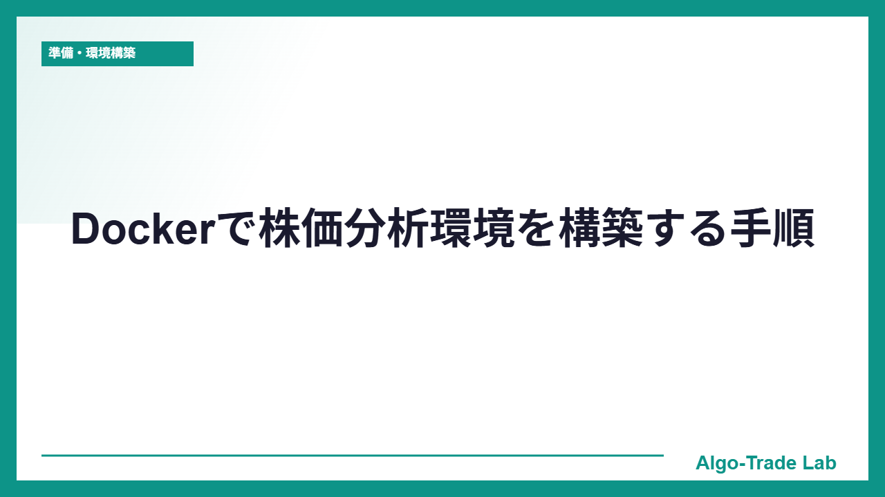 Dockerを使った株価分析環境の構築は、最初は少し手間ですが一度作ってしまえば誰でも同じ環境で分析できます。チームプロジェクトや複数PC間での環境統一に積極的に活用しましょう。