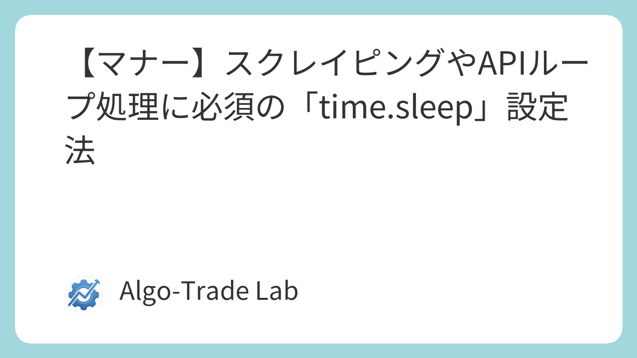 本記事では、time.sleepの基本的な使い方から、API・スクレイピングにおける適切な秒数設定、BAN回避のための実践的なループ設計までを解説します。