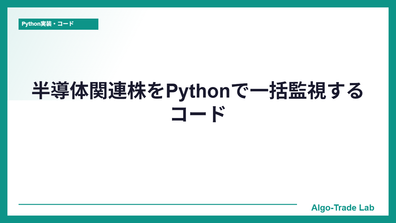 半導体セクターはNVIDIA・TSMC・SMCIなど注目銘柄が多く、AIブームとともに急騰する銘柄が続出しています。この記事では半導体関連株を一括で監視・分析するPythonコードを紹介します。