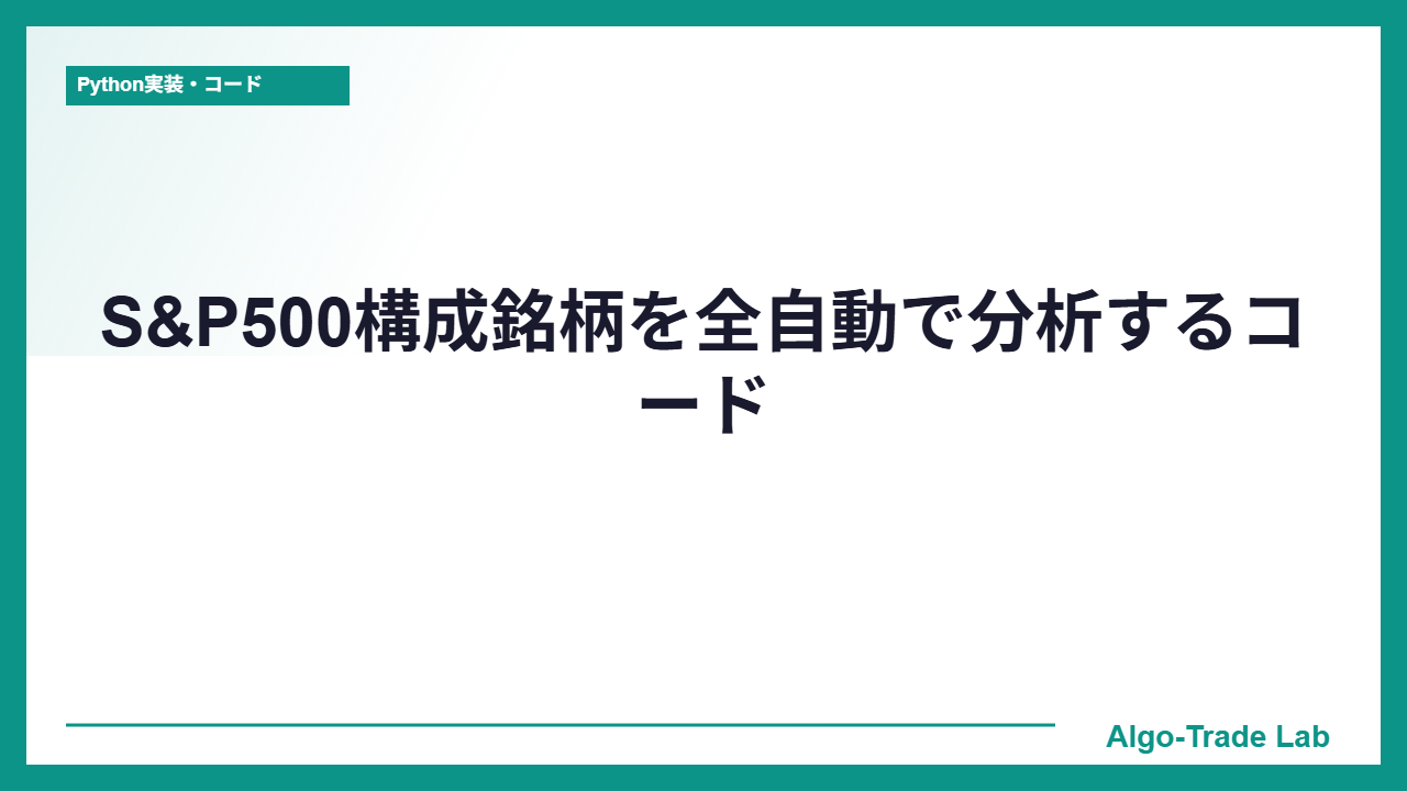 S&P500は米国を代表する500銘柄で構成される株価指数です。この500銘柄を自動取得し、一括分析・スクリーニングするPythonコードを紹介します。