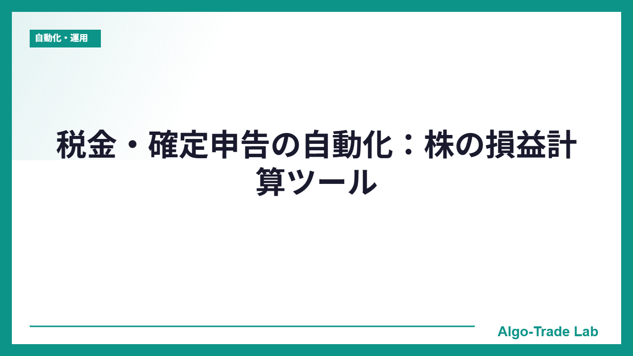 Pythonで損益計算を自動化することで、確定申告シーズンの大変な手作業から解放されます。実際に使う場合は各証券会社のCSVフォーマットに合わせてカラム名の調整が必要です。