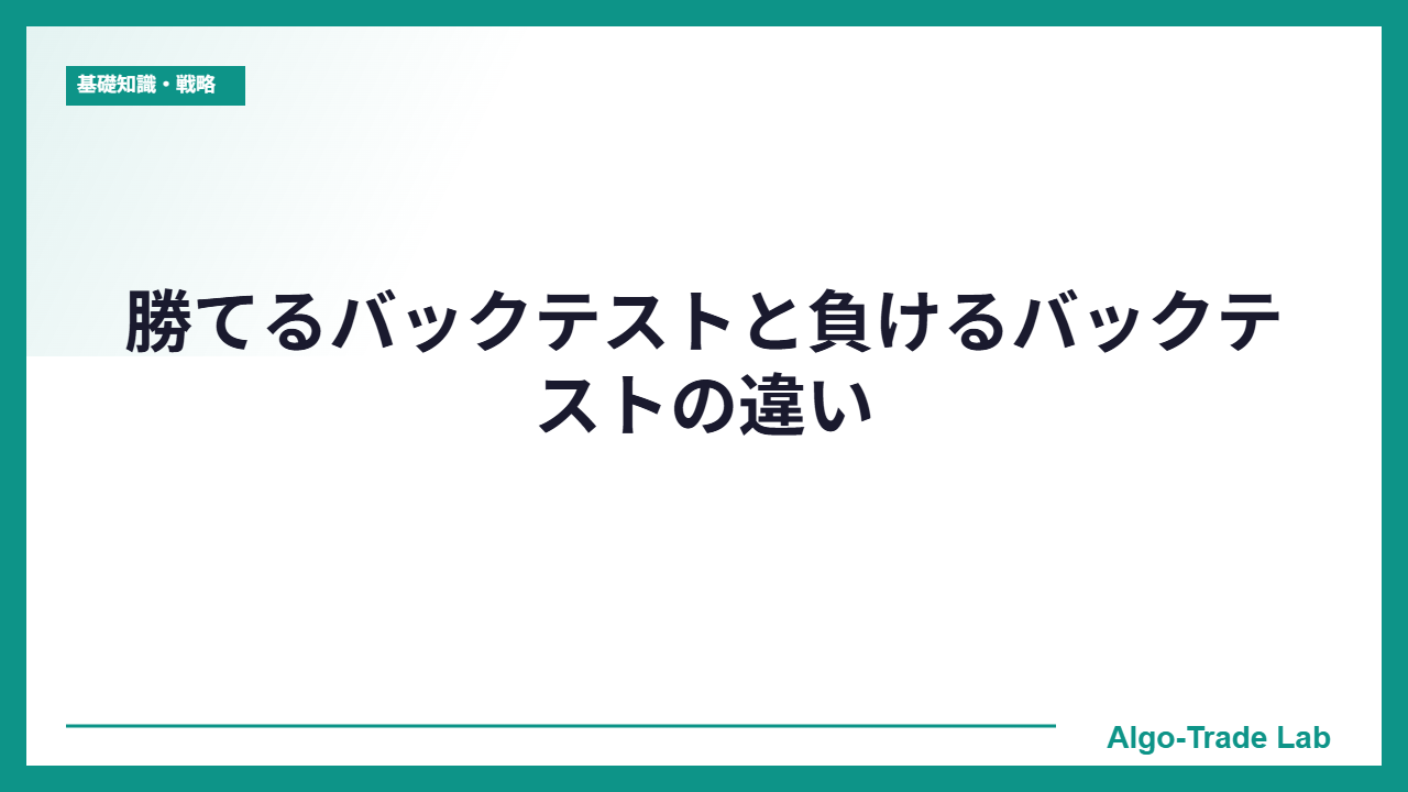 バックテストはアルゴリズムトレードの命綱ですが、正しく実施しなければ「嘘の結果」を信じてしまう危険があります。特に先読みバイアスと過学習には細心の注意を払い、手数料・スリッページを必ず含めましょう。